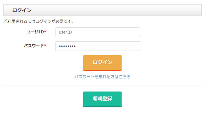 会員登録時に入力した登録情報(メールアドレスとパスワード)を入力し、 「ログイン」ボタンをクリックして、ログインして下さい。